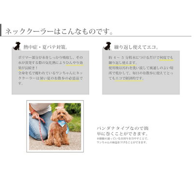 商品説明 詳細 水に濡らして巻くだけ、夏のお散歩にとっても便利なネッククーラー。